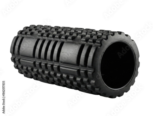 © PNG Lab, Obraz premium Black foam roller cylinder. Muscle recovery massage tool.