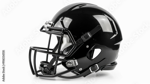 © touseef, Naklejka premium Black football helmet on white background - professional sports equipment for american football, protective gear for athletes, ideal for team uniform designs, sports marketing, and athletic training v
