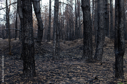 Obraz premium Black forest after the fire. Destruction of nature and climate change
