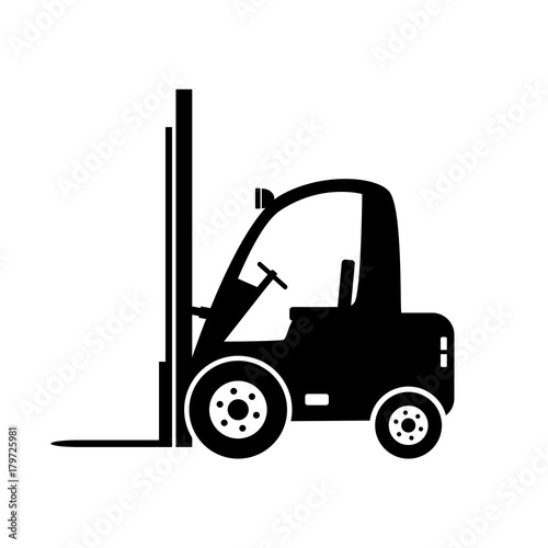 Naklejka premium Black forklift truck vector icon on white background