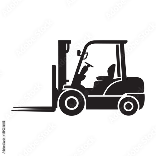 © Vecto Bundle, Naklejka premium Black forklift truck with forks and wheels industrial vehicle material handling