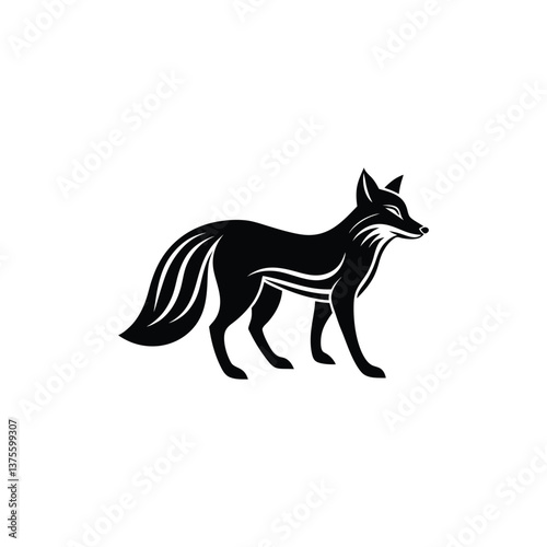 Obraz premium Black fox silhouette logo on white background