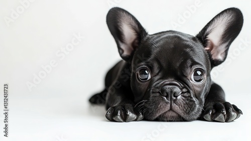 © LARA, Fototapeta premium black french bull dog closeup on a light blurred background