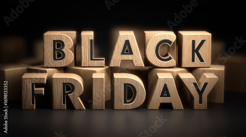 Obraz premium Black Friday: A close-up shot of wooden block letters spelling Black Friday evokes excitement and anticipation for the biggest shopping day of the year.
