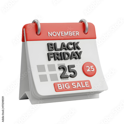 Fototapeta premium Black Friday, a day on the calendar, huge sale, 3D rendered icon on a white background