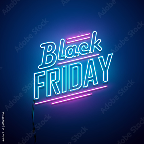 Fototapeta premium Black Friday background. Neon sign. Vector illustration.