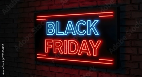 Obraz premium Black friday neon sign glowing in the dark, advertising big sales and discounts for the holiday shopping season, creating a festive and exciting atmosphere