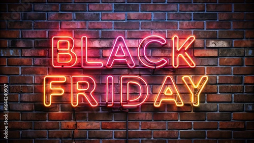 © Shibu, Obraz premium Black friday neon sign glowing on a brick wall, representing a major sale, retail event, and holiday shopping season