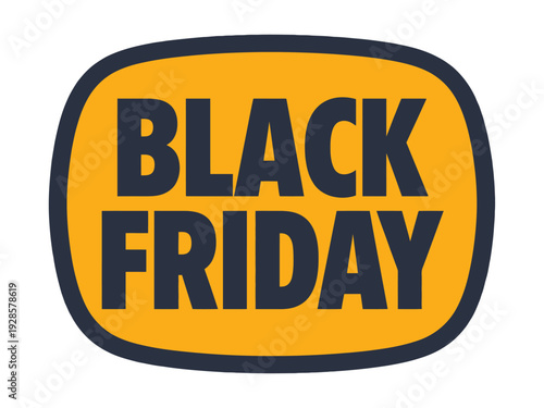 Fototapeta premium Black Friday sale announcement label features bold text inside a rounded rectangle.