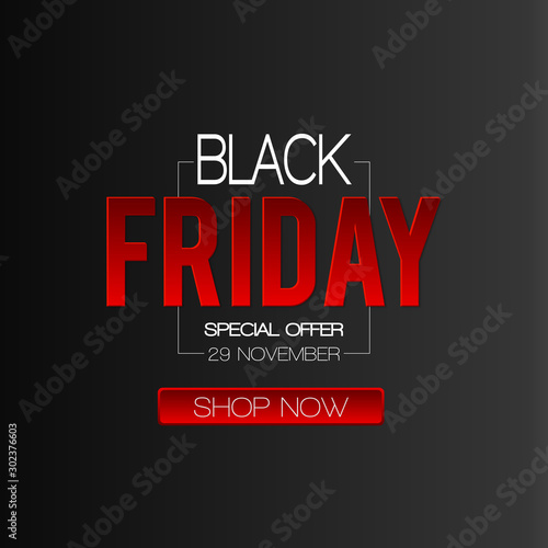 © Оксана Стекачева, Obraz premium Black Friday sale inscription design template. Black Friday Super Sale offer. Discount offer presentation. Creative concept for sales season. Black Friday banner. Vector illustration on black backgro