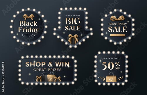 © CheowKeong, Obraz premium Black Friday sale label collection. Light bulb style promotion price tag set. Vector illustration.