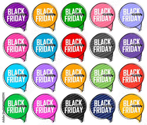 Obraz premium Black Friday, Set Sale speech bubble banners design template, discount tags,...