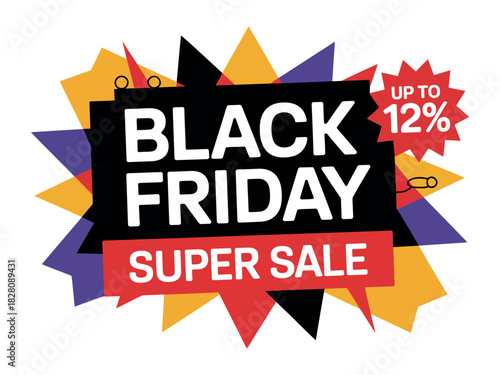 Fototapeta premium Black Friday Super Sale with up to 12% discount announced visually.