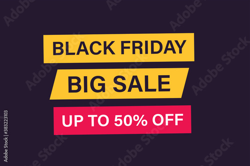 Fototapeta premium Black friday vector concept: Words of black friday big sale up to 50% off on the background