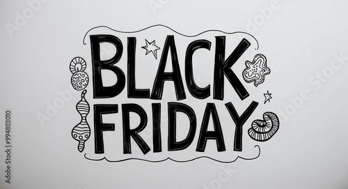 © Erlinda, Obraz premium black Friday word lettering with groovy doodles drawing design on plain white background