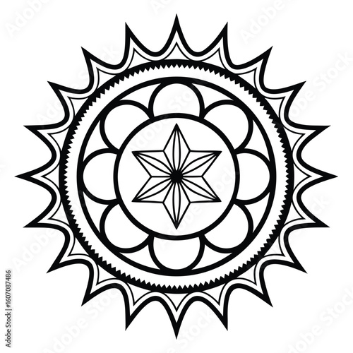 © Shanta123, Fototapeta premium Black geometric star mandala with pointed rays white