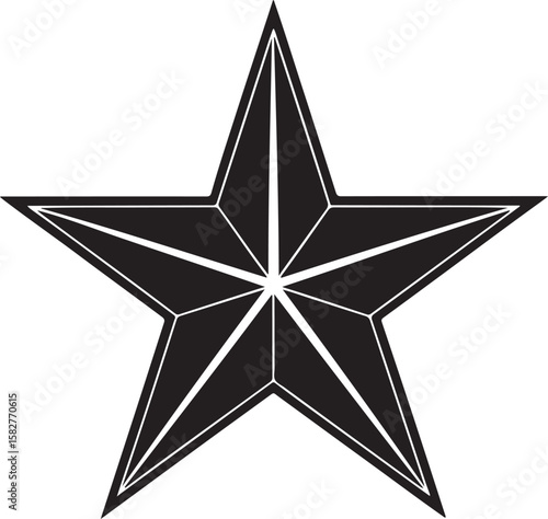 Obraz premium Black geometric star symbol with sharp points and white outlines vector
