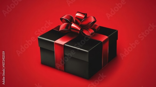 © Aisha, Fototapeta premium black gift box against red background. black friday gift box