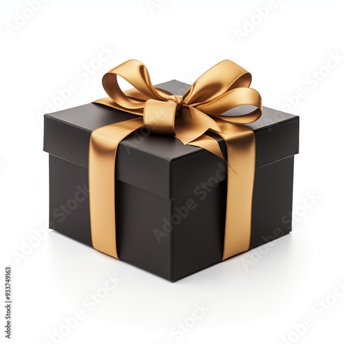 © dekzer_ai, Obraz premium Black Gift Box isolated on White Background.