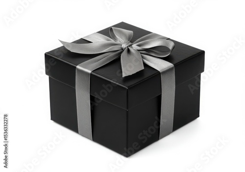 © png stock, Obraz premium Black gift box with silver ribbon