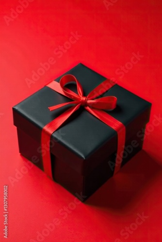 Obraz premium Black gift box wrapped in red paper with twine, box, paper, red