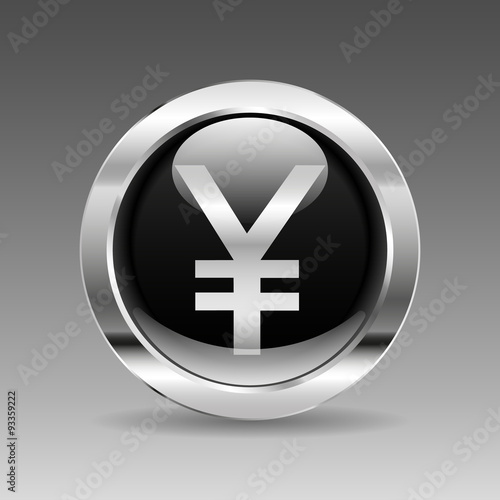 Obraz premium Black glossy chrome button - Japanese Yen sign