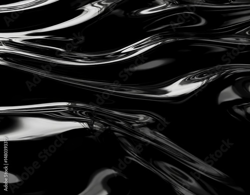Obraz premium Black glossy liquid in motion with sharp abstract reflections.