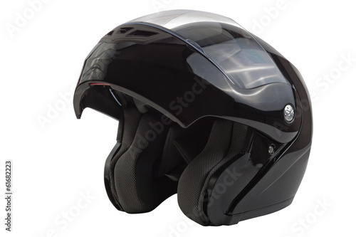 © YuryKo, Fototapeta premium Black, glossy motorcycle helmet