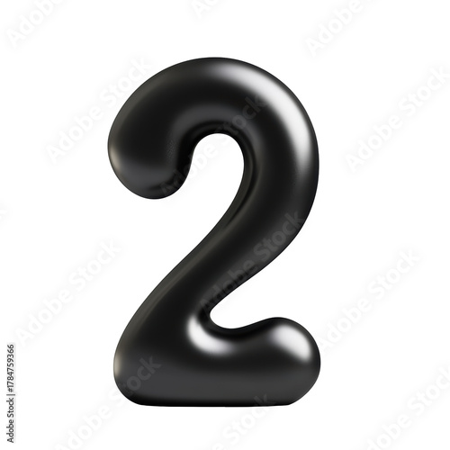 © sweet_mellow, Naklejka premium Black Glossy Number 2. Modern Typography And Design Element Isolated On Transparent Background