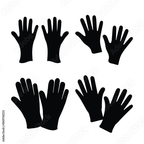 © Atique62, Fototapeta premium Black glove silhouettes: a versatile collection of hand protection icons