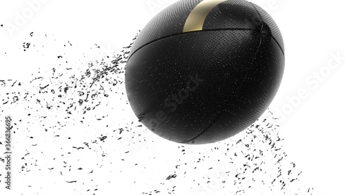 Fototapeta premium Black-Gold American Foot Ball with Black Particles in black-white lighting background. 3D CG. 3D illustration. 3D high quality rendering.