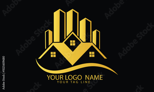 Naklejka premium Black Gold Real Estate Logo. Construction Architecture Building Logo Design...