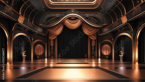 © Poko, Obraz premium Black golden ceremony award stage venue background.
