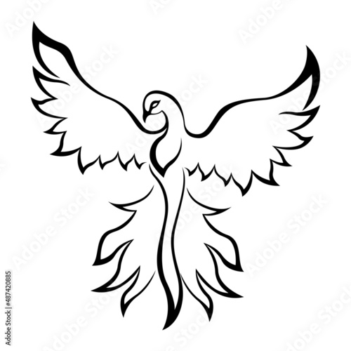 Obraz premium Black graceful Firebird contour isolated over white. Hand drawing vector...
