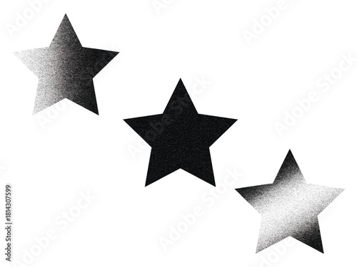 © Ruhi.Art, Obraz premium black gradient star design with three textured silhouettes on white background, three black stars with grainy gradient texture arranged in clean minimal layout