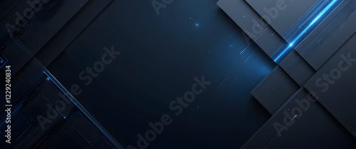 © Nosheen art, Obraz premium Black gray blue abstract modern background for design. Dark. Geometric shape. 3d effect. Diagonal lines, stripes. Triangles. Gradient. Light, glow. Metallic sheen. Minimal. Web banner. Wide. Panoramic
