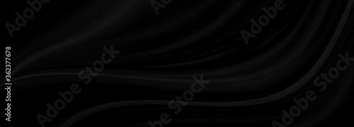 © Kamjana, Fototapeta premium Black gray satin dark fabric texture luxurious shiny that is abstract silk cloth panorama background with patterns soft waves blur beautiful.