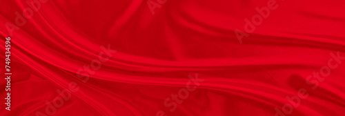 © Kamjana, Obraz premium Black gray satin dark fabric texture luxurious shiny that is abstract silk cloth panorama background with patterns soft waves blur beautiful.