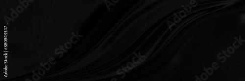 Fototapeta premium Black gray satin dark fabric texture luxurious shiny that is abstract silk cloth panorama background with patterns soft waves blur beautiful.