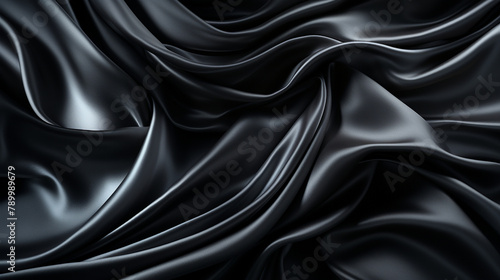 © Andrii Yablonskyi, Obraz premium Black gray satin dark fabric texture luxurious shiny that is abstract silk cloth panorama background with patterns soft waves blur сreated with Generative Ai