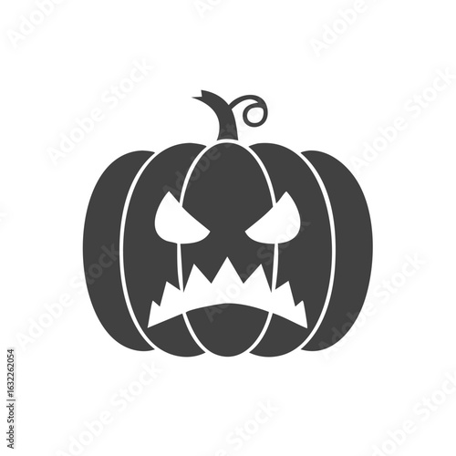 Fototapeta premium Black Halloween pumpkin with scary face graphic on white background