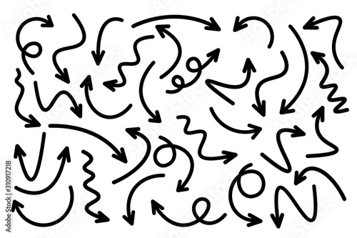 Naklejka premium Black Hand Drawn Arrows Set on White Background. Arrow, Cursor Icon. Vector...