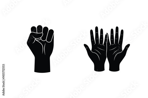 Obraz premium Black Hand Gestures Clenched Fist And Open Palm Vector Illustration Silhouette