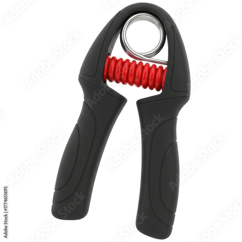 © Suryani, Obraz premium Black hand gripper with red spring for grip strength and forearm exercise