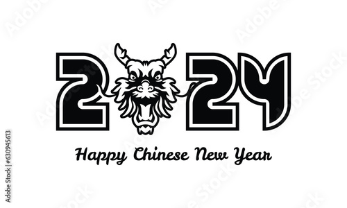 © Rizky, Fototapeta premium Black happy 2024 dragon new year illustration