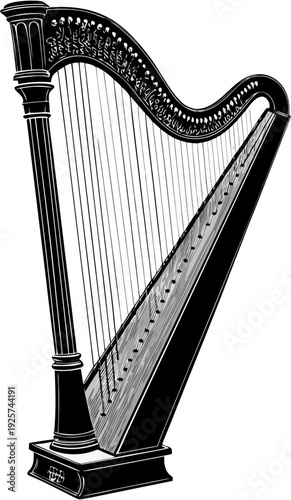 Obraz premium Black Harp Silhouette Classical String Instrument Vector
