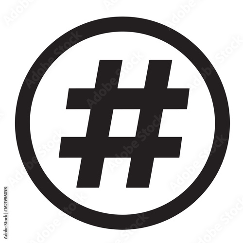 Fototapeta premium Black hashtag symbol contained inside a simple white circle isolated on white background