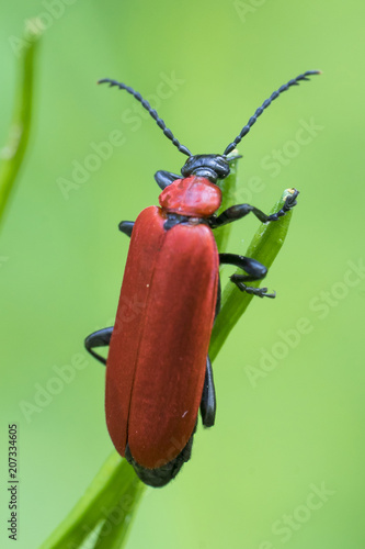 © irottlaender, Fototapeta premium Black-Headed Cardinal Beetle (Pyrochroa coccinea), rear view