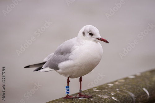 © Gints, Fototapeta premium Black-headed Gull bird, Chroicocephalus ridibundus with ring.