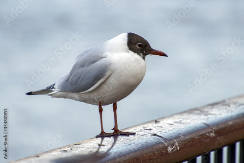 © philipbird123, Fototapeta premium Black-headed Gull on a Railing by the River Thames